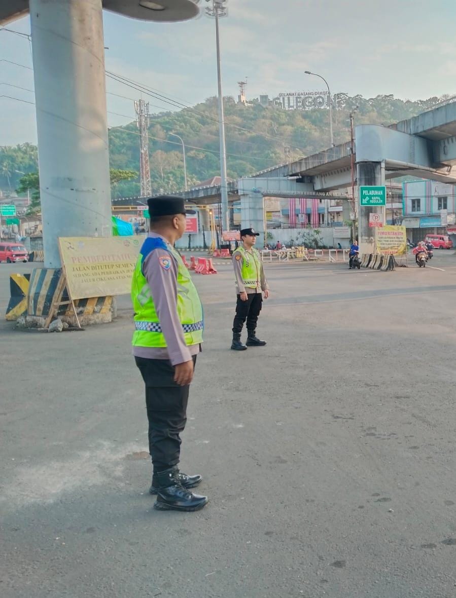Personel Polsek KSKP Merak Laksanakan Pengaturan Kendaraan di Pelabuhan