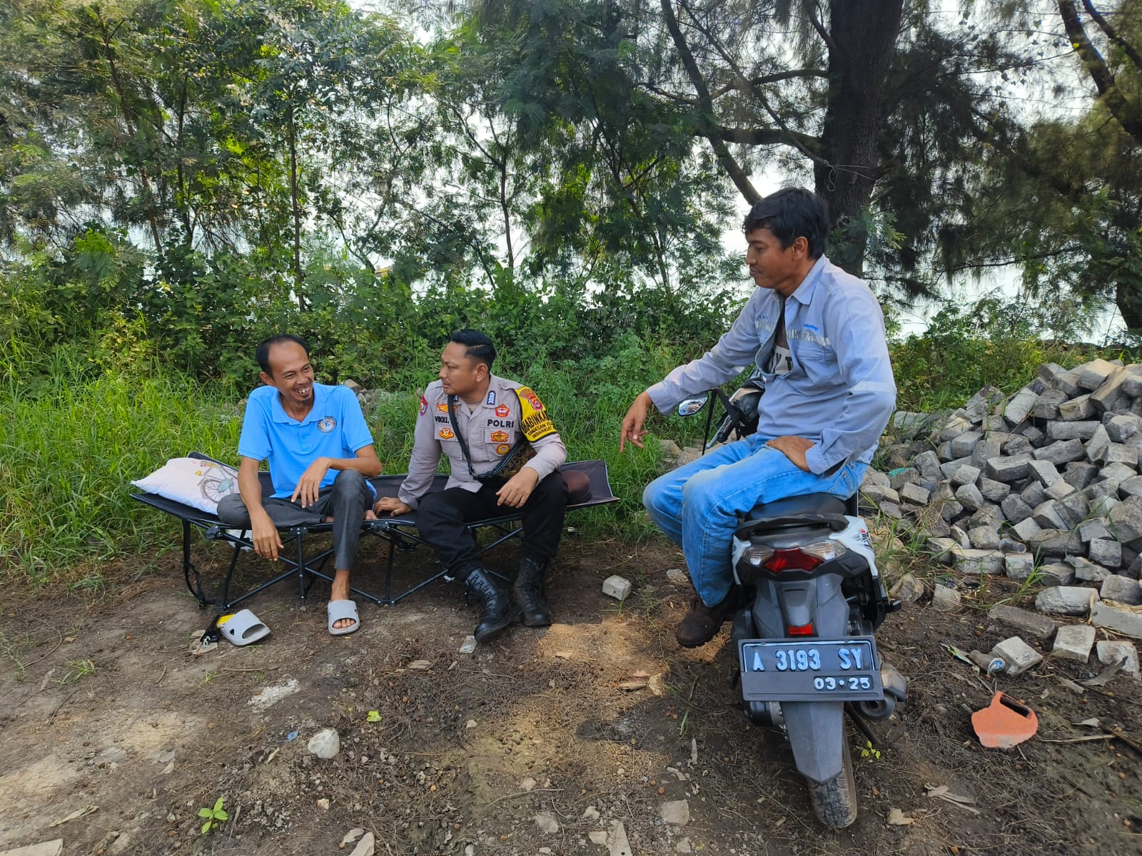 Jalin Silaturahmi, Bhabinkamtibmas Pelabuhan Polsek KSKP Banten berbincang ke Buruh Pelabuhan