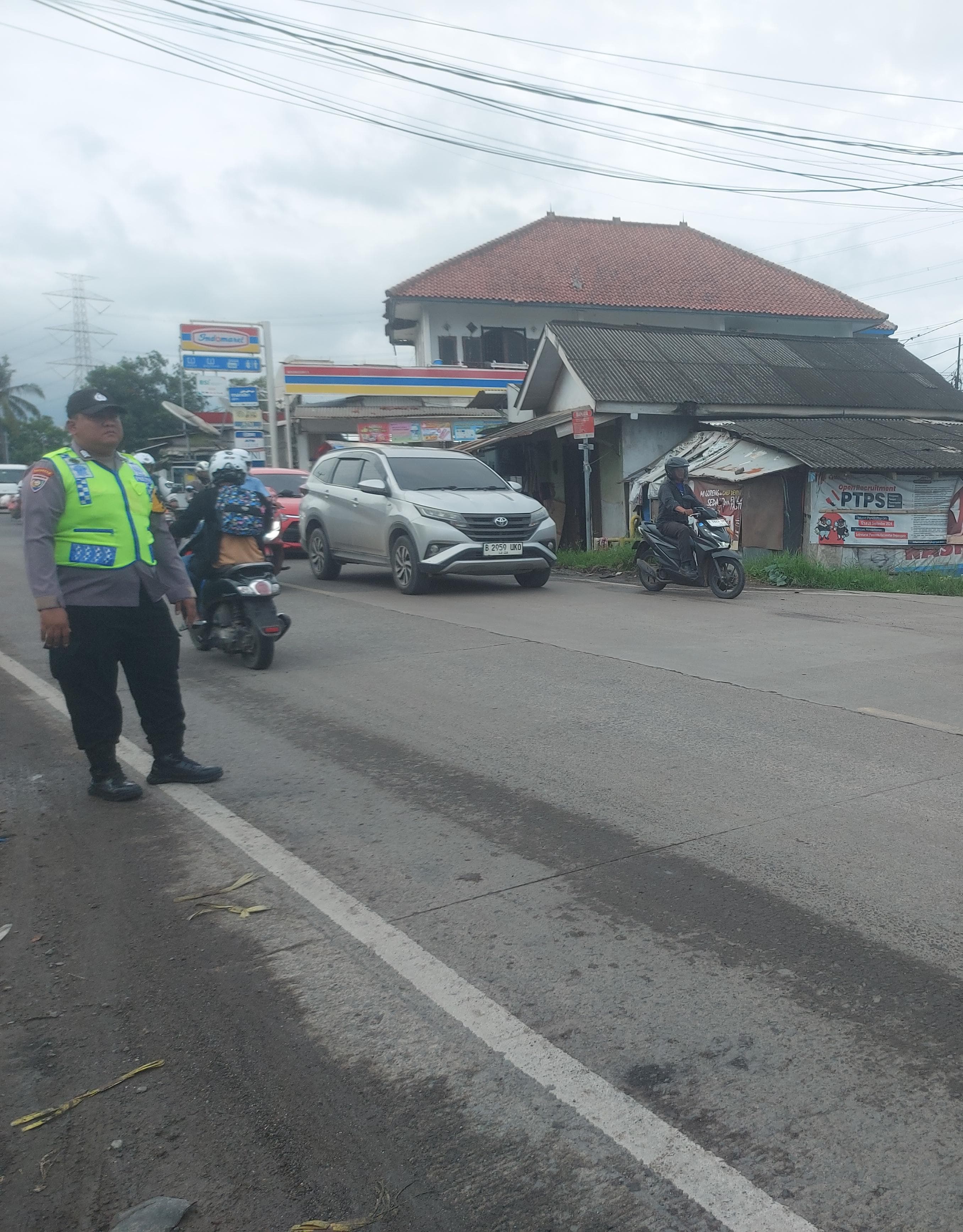 Laksanakan Strong Poin Di Pagi Hari, Bripka Tri Handoko dan Bripka Heru Bhabinkamtibmas Laksanakan Giat Pengaturan Lalin Di Jalan Raya Wadas Bojonegara