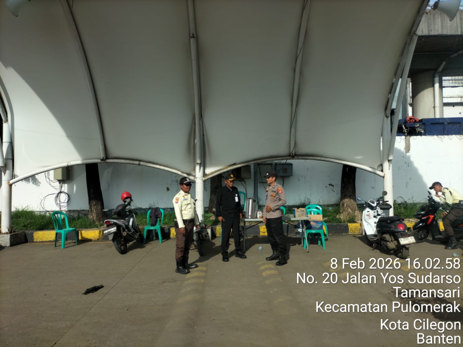Cilegon - Personel Polsek Kskp Merak Polres Cilegon Polda Banten melaksanakan sambang dan patroli kawasan pelabuhan merak dalam rangka menjaga Harkamtibmas di Kawasan Pelabuhan Merak, Minggu (08/02/2026).