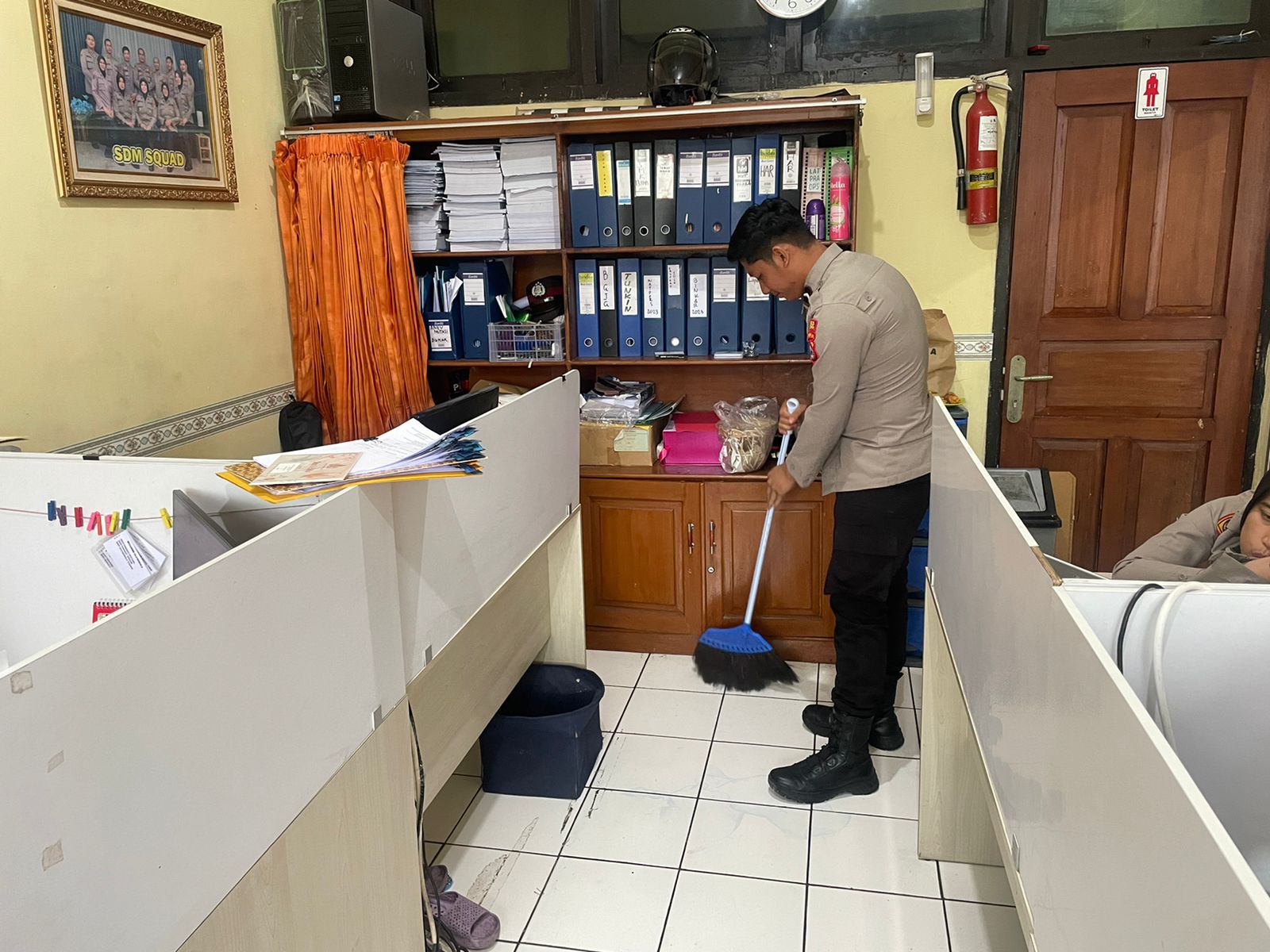 Anggota Bag SDM Polres Cilegon, Aktif daalam melaksankan kegiatan membersihkan ruangan kerja secara rutin.