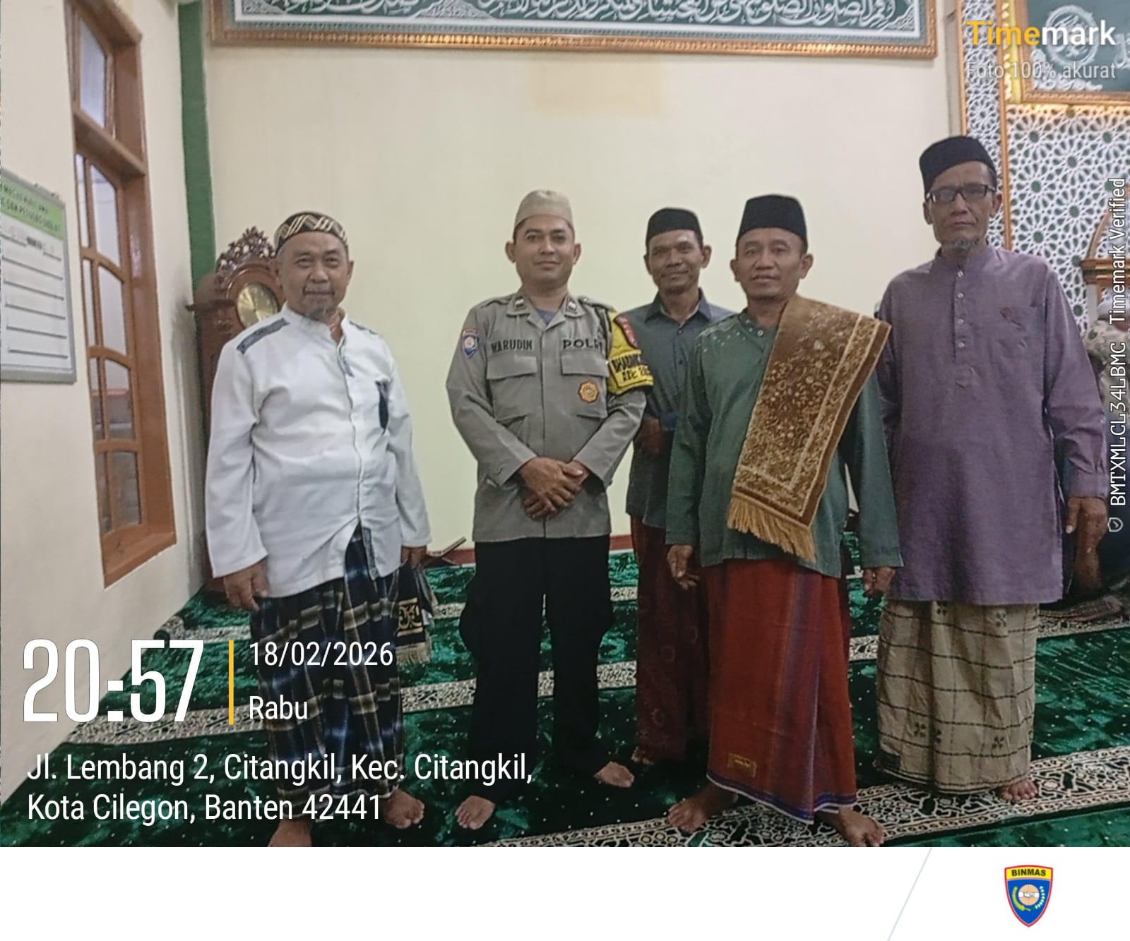 Cilegon - Bhabinkamtibmas polsek Ciwandan Polres Cilegon Polda Banten Silahturahmi Dan Tarawih Keliling Bersama warga Masyarakat lingkungan yang bertempat di masjid lingkungan binaannya, Kamis (19/02/2026).