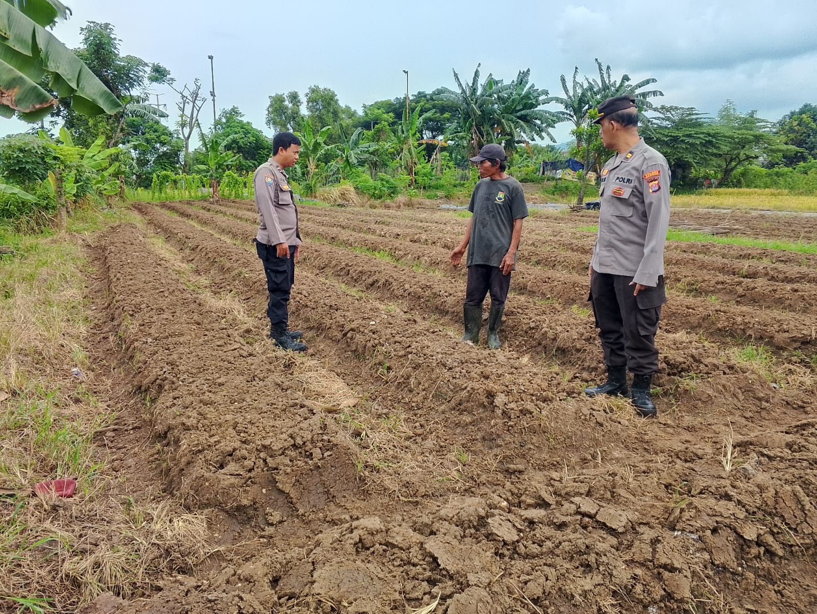 Cilegon - Dalam upaya mendukung program ketahanan pangan nasional Panit Binmas Polsek Ciwandan IPTU Mustriatno Bersama Bhabinkamtibmas Polsek Ciwandan Polres Cilegon Polda Banten AIPDA Mere Erlansyah melaksanakan kegiatan sambang dan kunjungan ke Lahan Produktif warga di lingkungan Kelurahan Warnasari kecamatan Citqngkil kota Cilegon, Senin (02/03/2026).