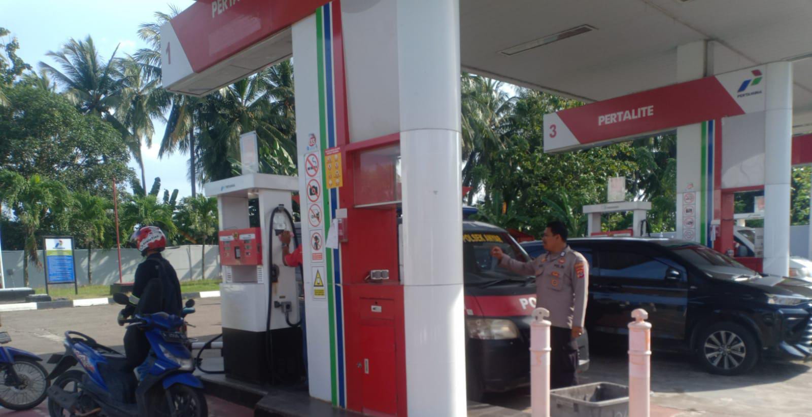 Personil Polsek Anyar Monitoring Ketersediaan BBM di SPBU Wilayah Anyar