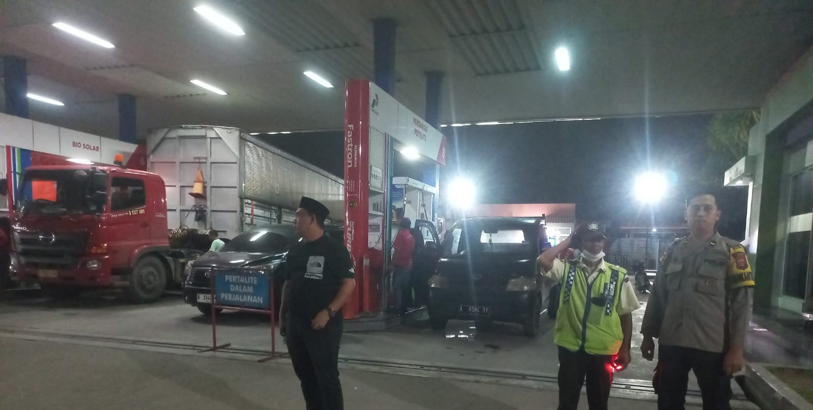 Datangi SPBU ,Personil Polsek Ciwandan Pastikan Stok BBM Tersedia