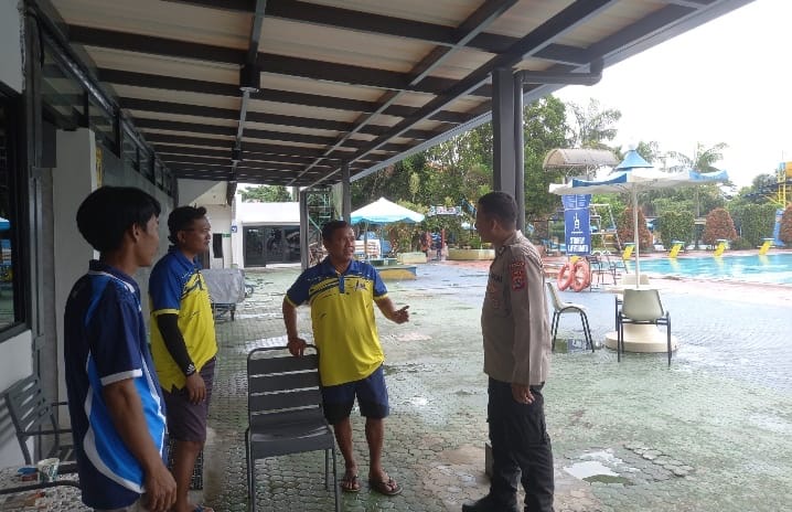 Bhabinkamtibmas Kunjungi dan Menyapa Petugas Keamanan Krakatau Water World, Jalin Sinergi Jaga Keamanan Kawasan Rekreasi