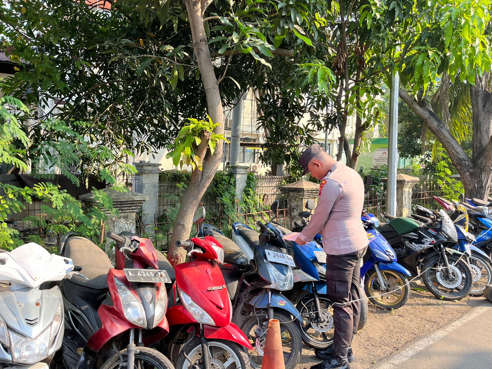 Cilegon, Polres Cilegon Polda Banten. Di gudang barang bukti Polres Cilegon. Anggota SatTahti polres cilegon mengecek barang bukti. (19/03/2026)