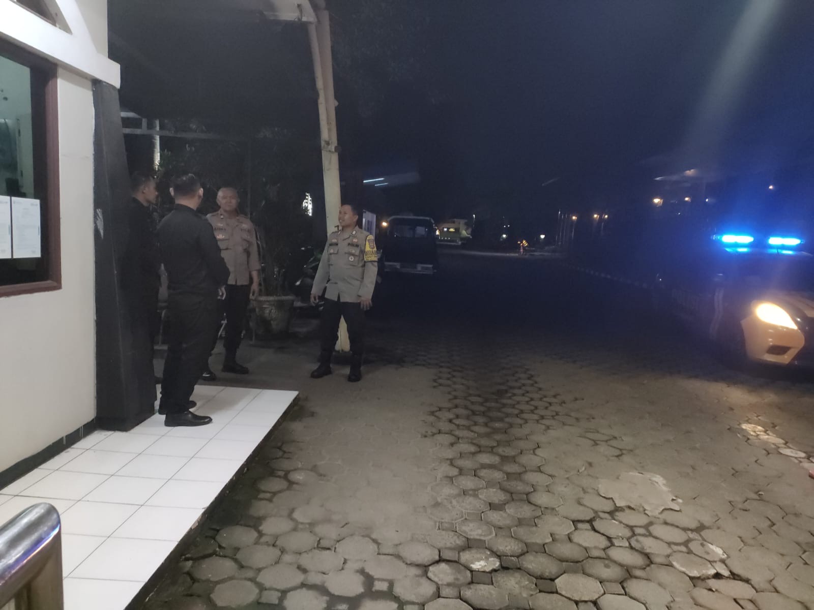 Personel Polsek Purwakarta melakukan patroli Blue Light Dialogis pada malam hari, bertujuan untuk meningkatkan keamanan dan ketertiban masyarakat (kamtibmas) di wilayah hukumnya