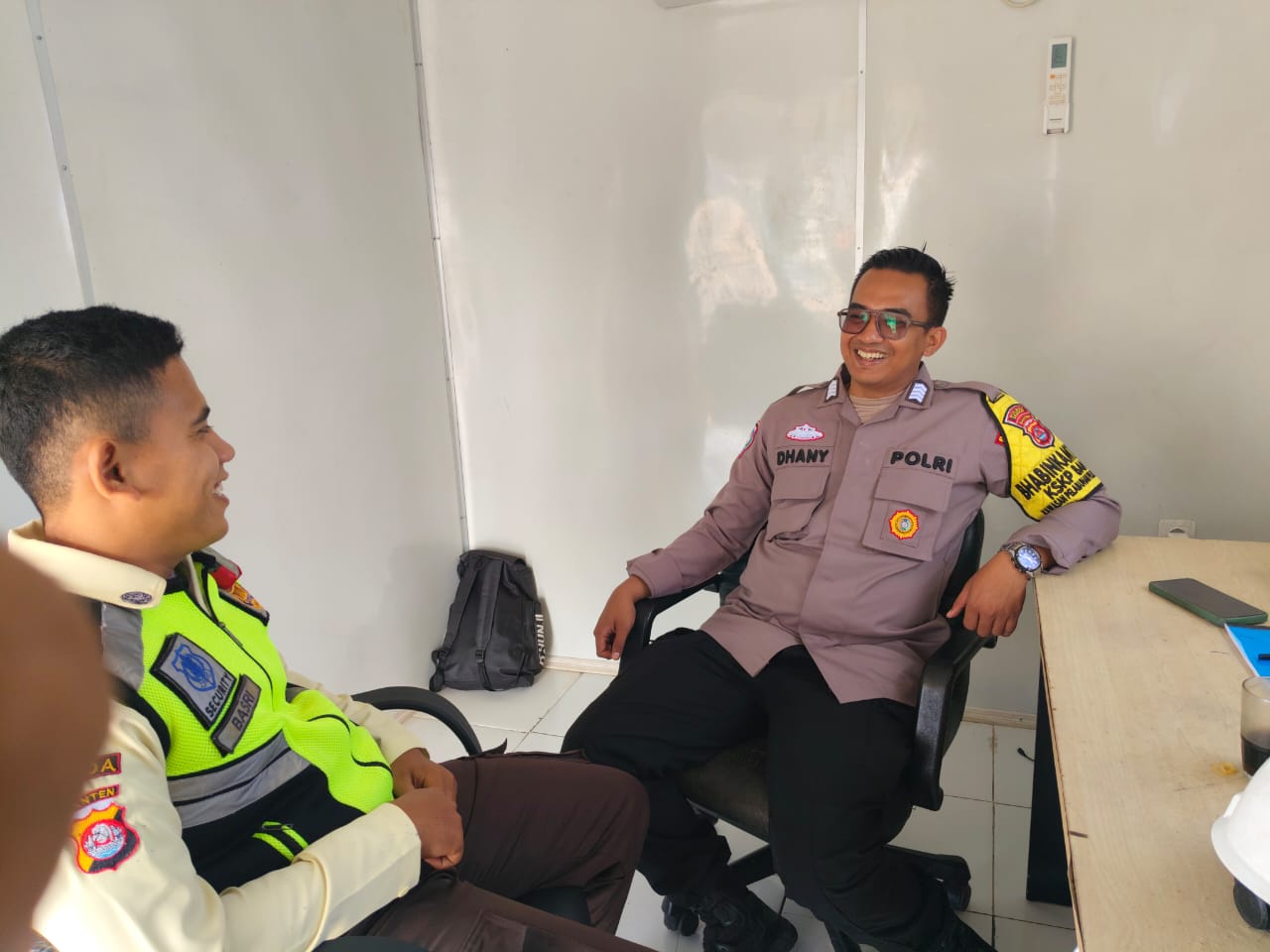Kapolres Cilegon Polda Banten AKBP Martua Raja Taripar Laut Melalui Kapolsek Kskp Banten Polres Cilegon Polda Banten AKP Fredo Leonard Mengatakan Personil Polsek Kskp Banten Rutin menyambangi anggota Security dan memberikan himbauan agar para anggota Security bisa melaksanakan tugas menjaga keamanan di lingkungan Kawasan Pelabuhan.