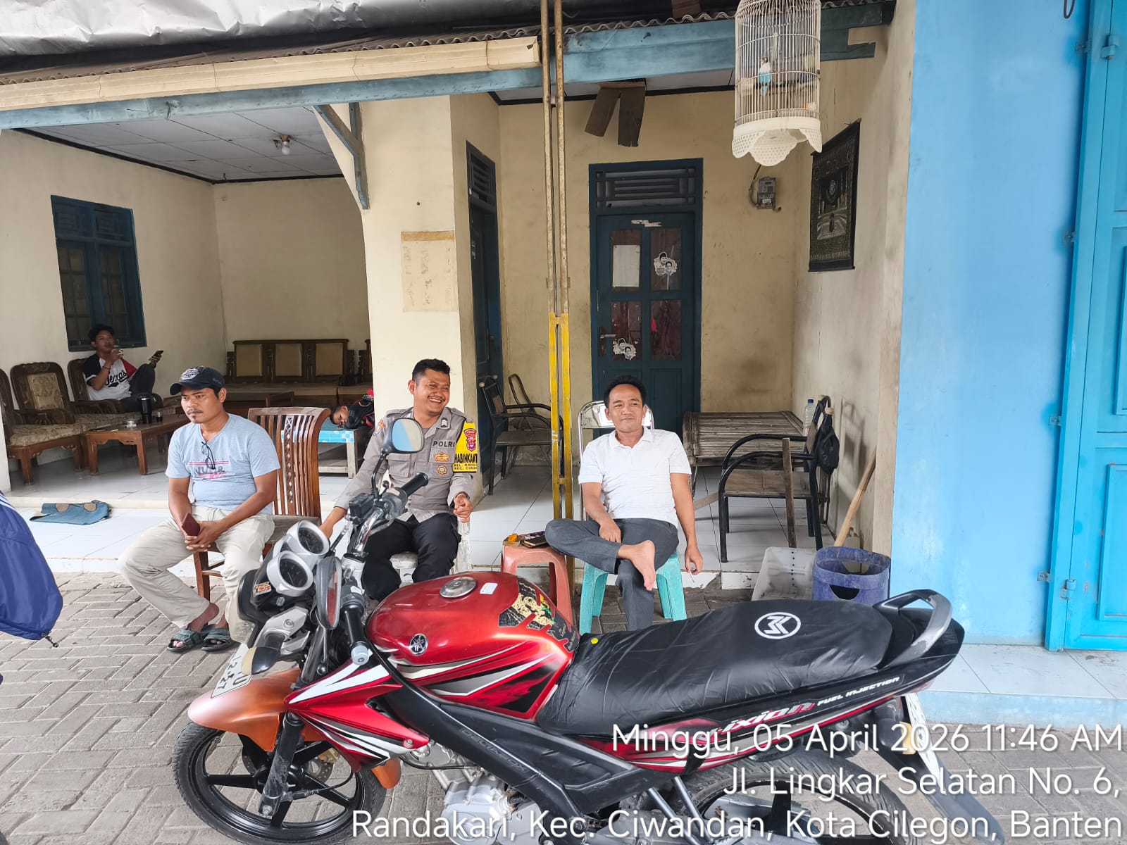 Cilegon - Giat sambang ini merupakan salah satu tugas rutin Bhabinkamtibmas yakni dengan melaksanakan kunjungan kepada masyarakat binaannya untuk menjalin silaturahmi yang lebih erat dan menyampaikan pesan-pesan kamtibmas serta mencari informasi yang berkembang di masyarakat agar tercipta situasi kamtibmas yang aman dan kondusif, Minggu (05/04/2026).