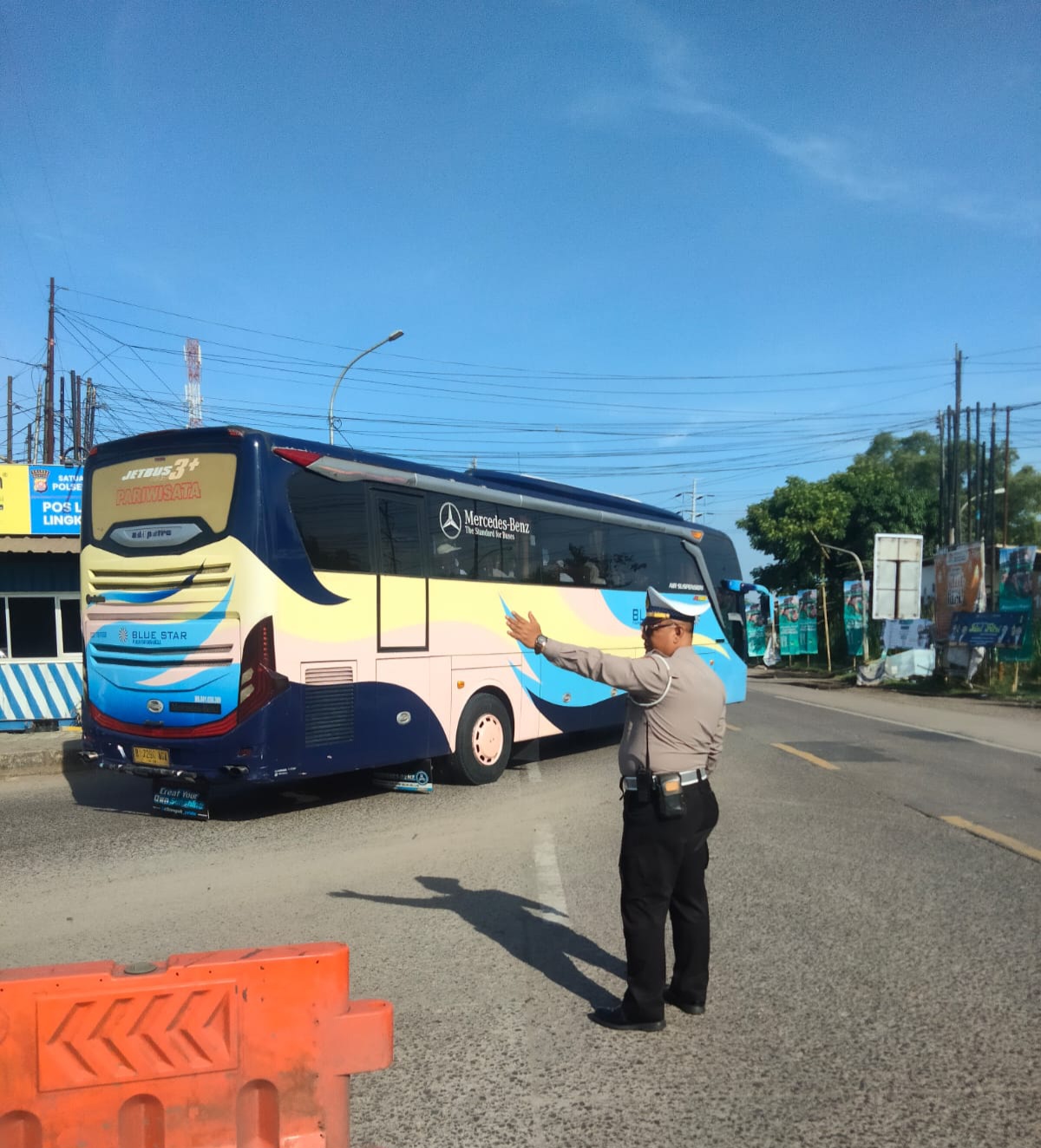 Personil Unit Lantas Polsek Ciwandan Pastikan Kelancaran Dan Kesalamatan Arus Wisata