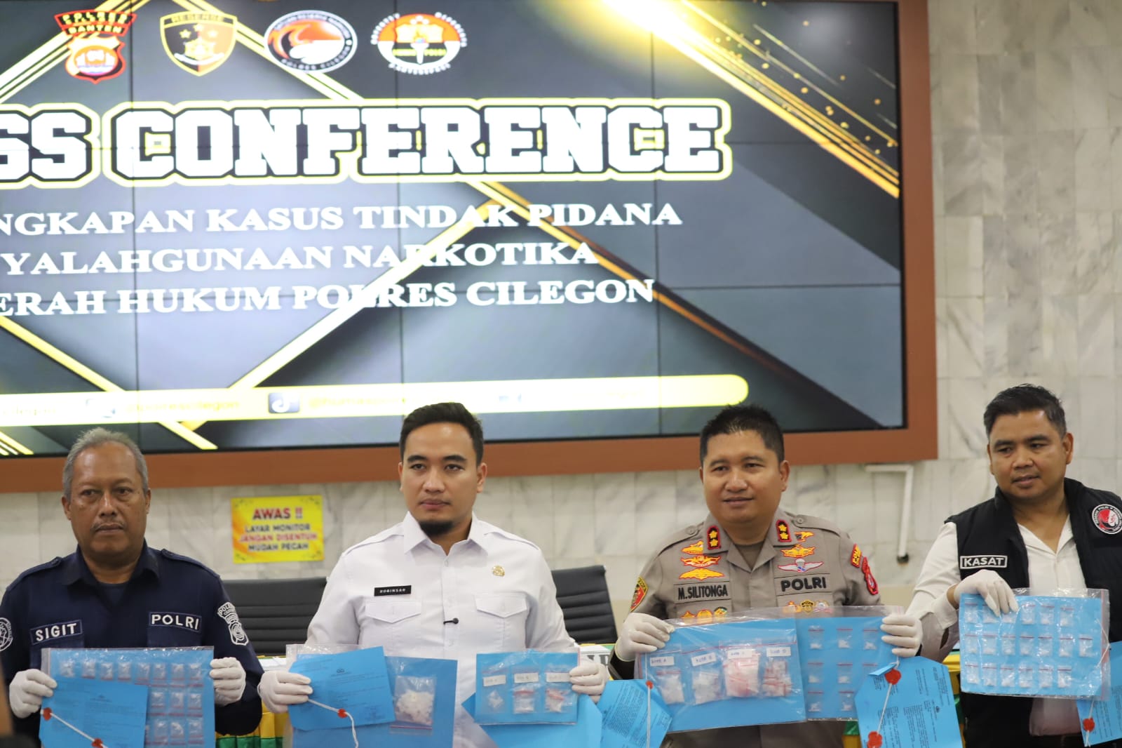 Kapolres Cilegon AKBP Dr. Martua Raja Taripar Laut Silitonga menyampaikan bahwa dari total tersangka, 9 orang berperan sebagai pengedar dan 3 orang sebagai perantara dalam transaksi narkotika.