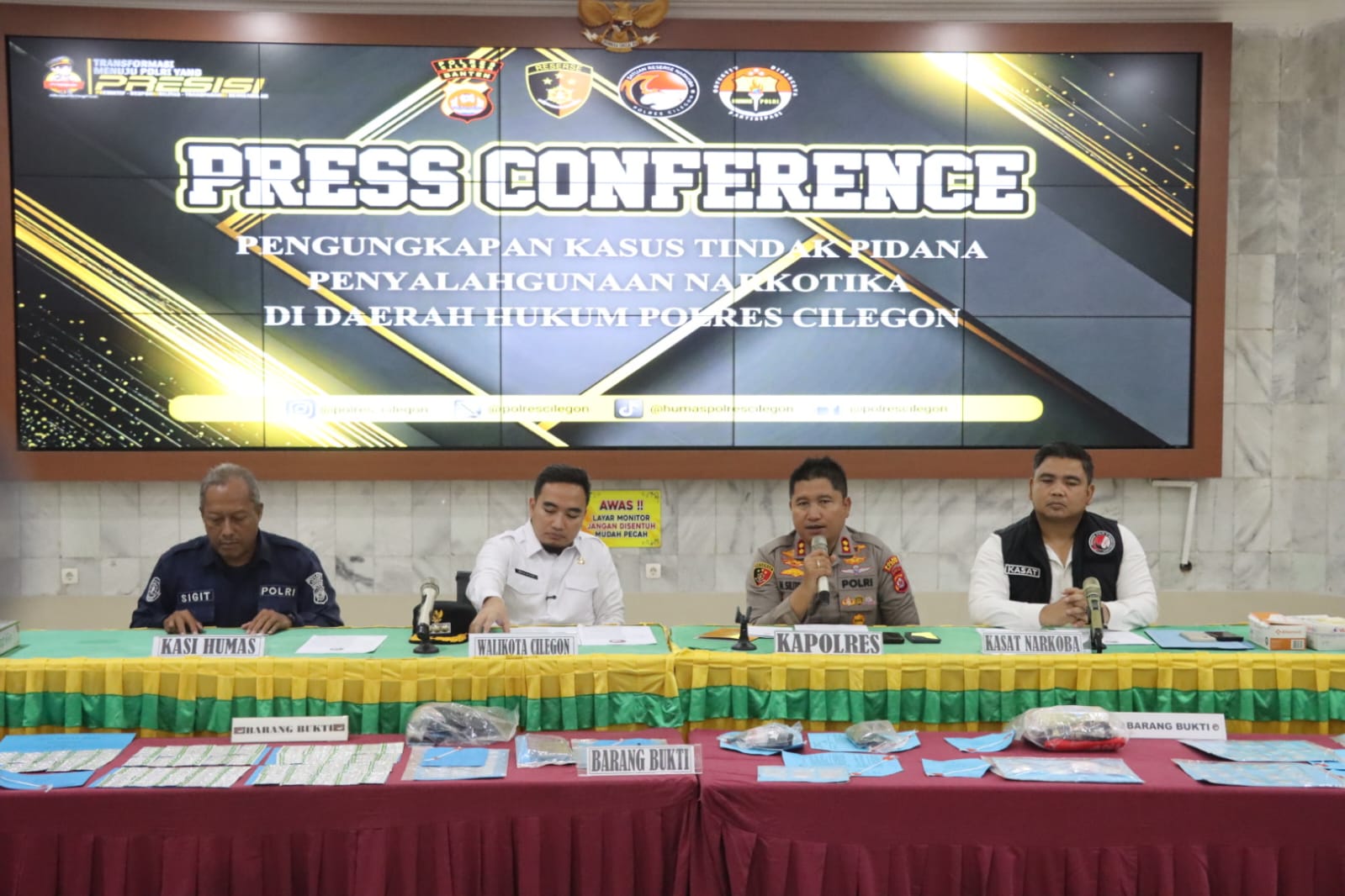 Kapolres Cilegon AKBP Dr. Martua Raja Taripar Laut Silitonga menyampaikan bahwa dari total tersangka, 9 orang berperan sebagai pengedar dan 3 orang sebagai perantara dalam transaksi narkotika.