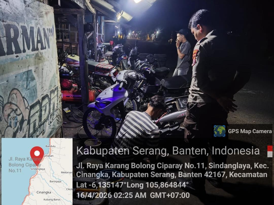 *Cilegon* – Dalam Rangka Pencegahan Kejahatan Jalanan dan Memelihara situasi keamanan dan menjaga serta memberikan rasa aman dan nyaman di masyarakat,Salah satu upaya untuk mewujudkan hal tersebut sebagaimana yang dilakukan oleh Personil Polsek Cinangka Polres Cilegon Polda Banten melaksanakan giat patroli blue light malam hari hingga menjelang pagi, Kamis (16/04/2026).
