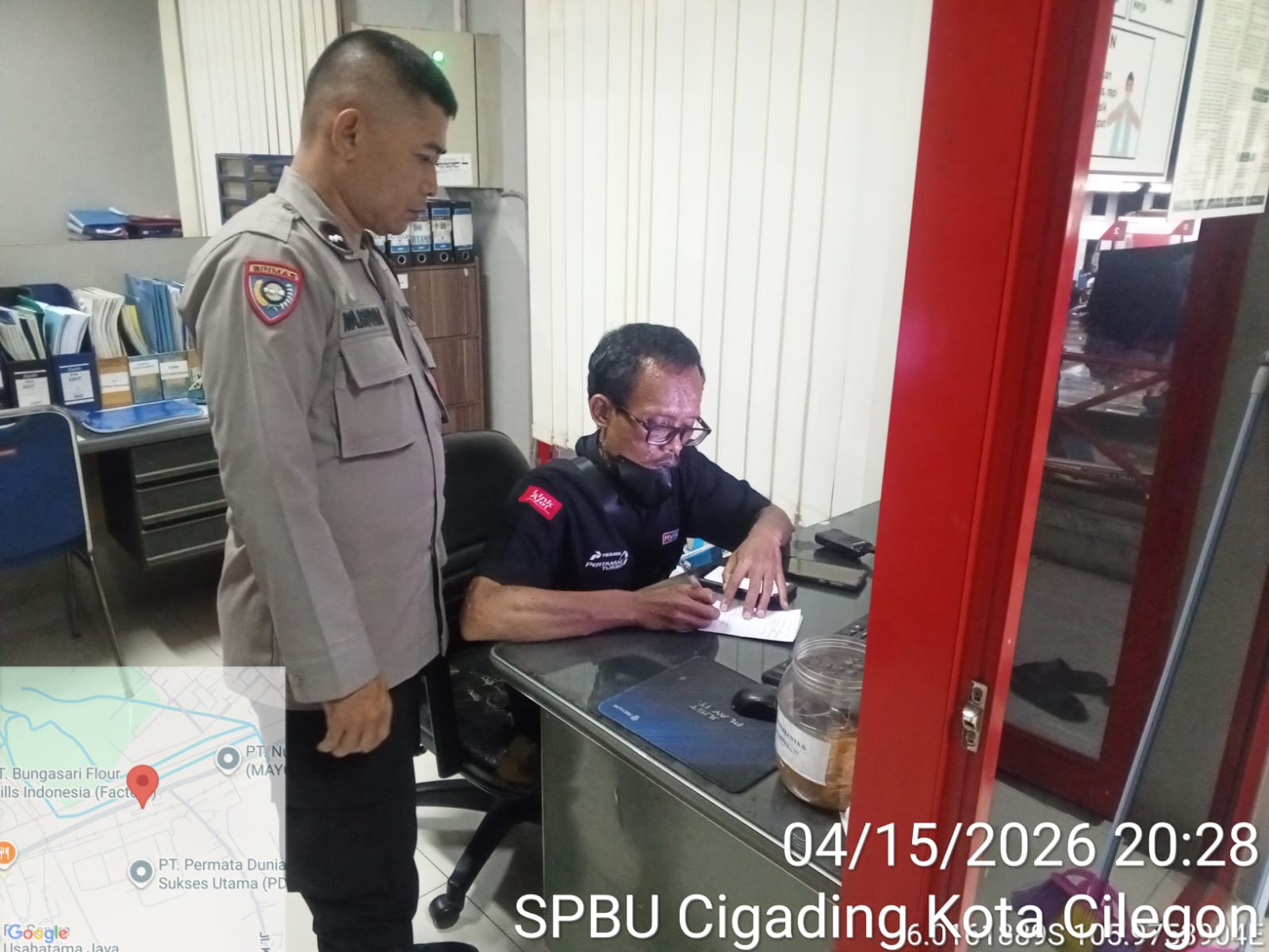 Cilegon - Kepolisian Polsek Ciwandan Polres Cilegon Polda Banten, melakukan pengecekan stok Bahan Bakar Minyak (BBM) di dua SPBU di wilayah Ciwandan, Cilegon, Kamis (16/04/2026).