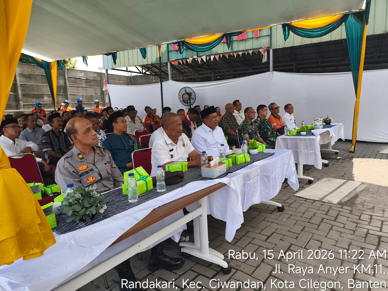 Hadir pula Kasi Trantib Kec. Ciwandan Hebi beserta staf, Lurah Randakari dan Lurah Kepuh, perwakilan tokoh masyarakat Kec. Ciwandan, perwakilan RT dan RW Kel. Randakari dan Kel. Kepuh, serta karyawan PT JMR.