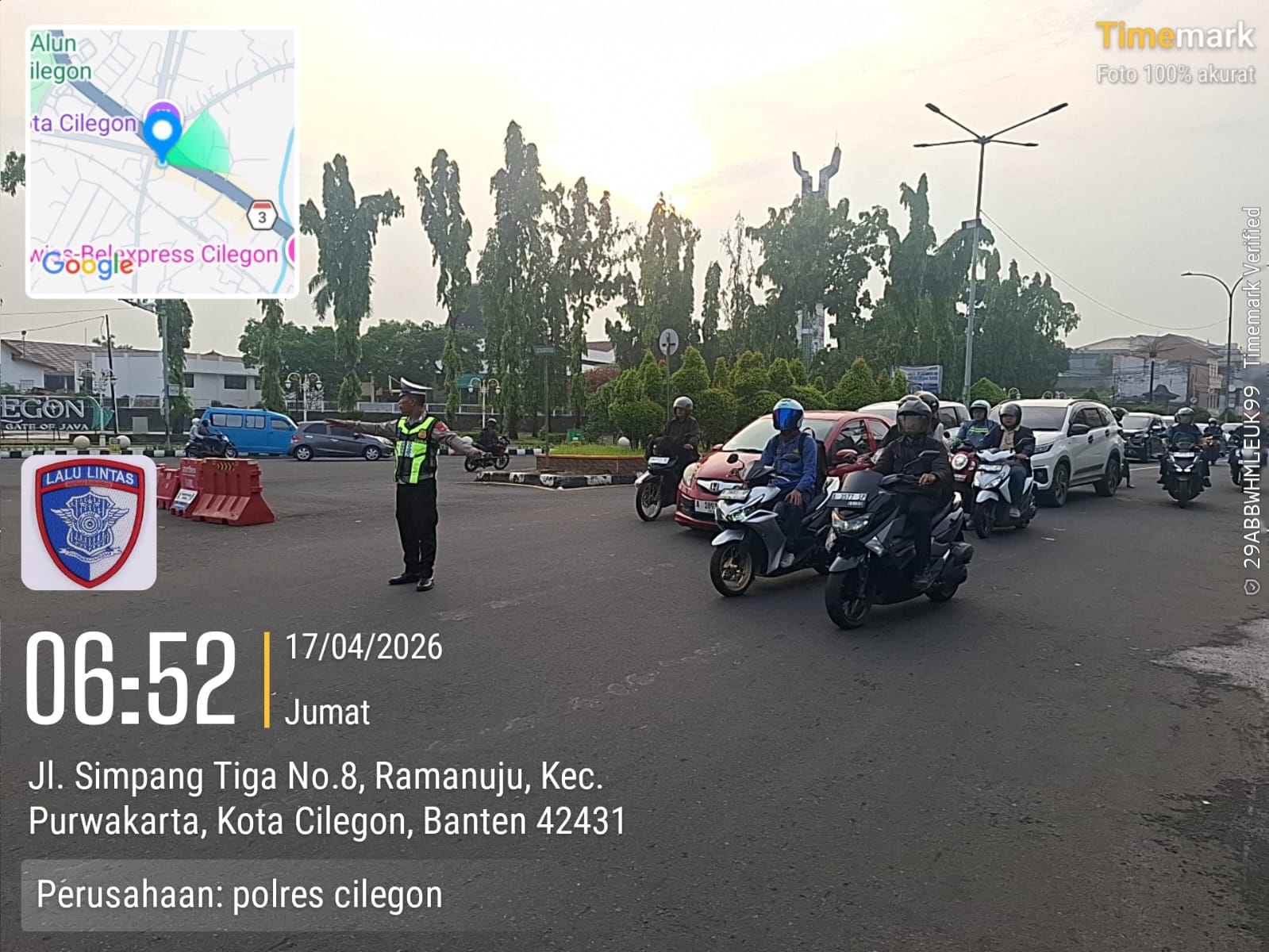 Cilegon, Satlantas Polres Cilegon Polda Banten – Berikan pelayanan kepada masyarakat Kasat lantas Polres Cilegon AKP Ridwan memerintahkan jajaran lalulintas untuk melaksanakan pengaturan lalu lintas di penggal – penggal jalan yang rawan kemacetan di Kota Cilegon, (Jumat,17/4/2026)