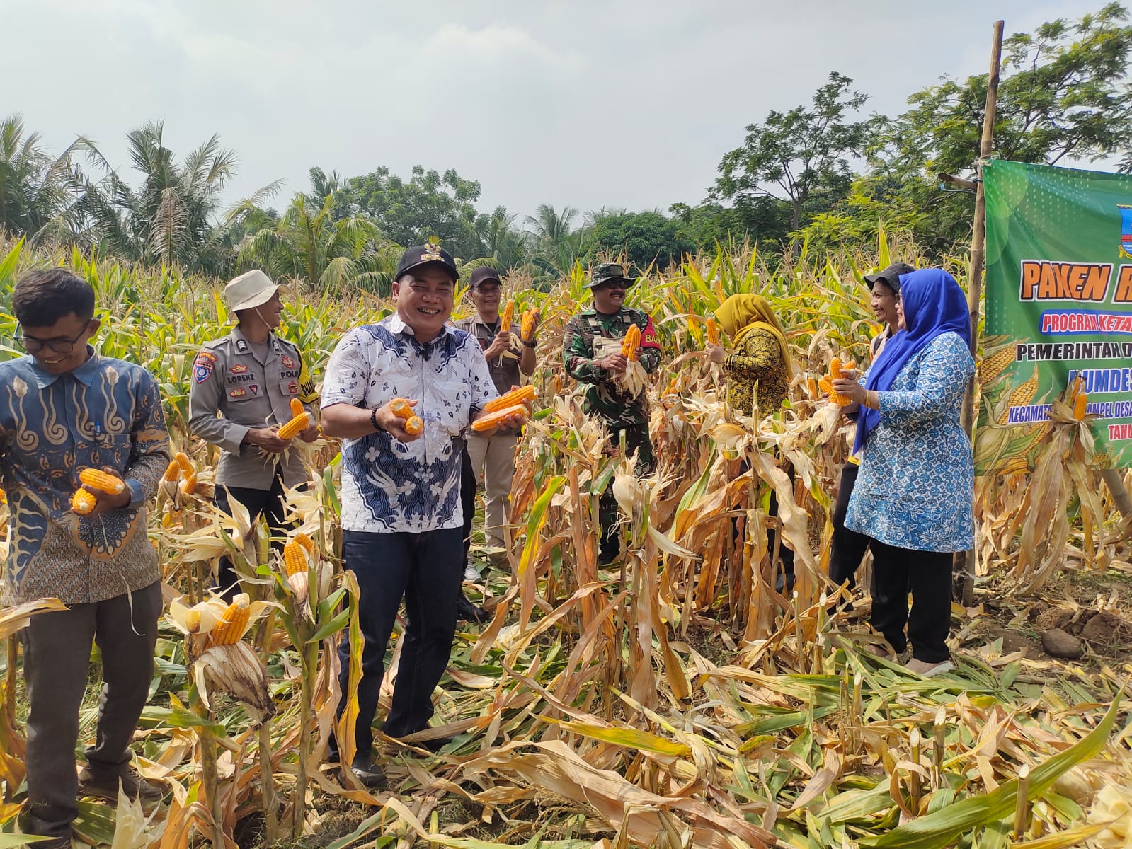 Kapolsek Puloampel IPTU JONATHAN MAMPETUA SIRAIT, S. Tr. K. beserta anggota Polsek Puloampel melaksanakan Kegiatan Panen Raya Jagung Poktan (Kelompok tani) BUMDES PULO AMPEL SAKTI KARYA, bersama Stekholder Desa Puloampel.