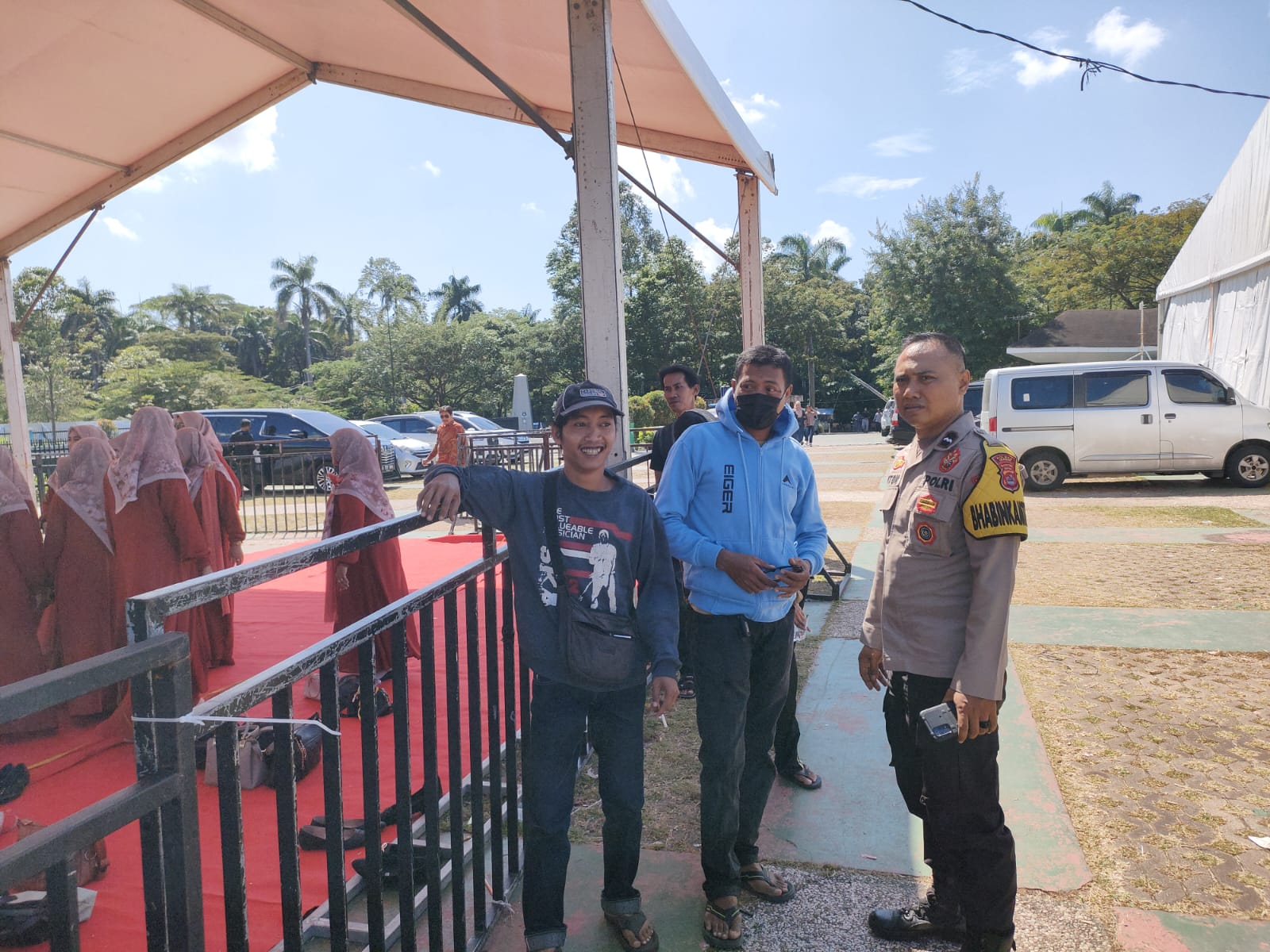 Patroli dilakukan dengan berkeliling mengawasi setiap sudut kawasan, mulai dari area lapangan, jalur akses masuk dan keluar, hingga tempat-tempat yang sering dikunjungi oleh masyarakat. Selain mengamati kondisi lingkungan, petugas juga memantau aktivitas warga yang datang untuk berolahraga, bersantai, maupun berkumpul bersama keluarga dan kerabat.